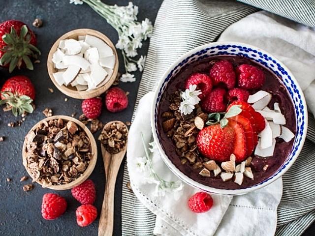 Kdo ne mara "grenkega" kakava? Kaj pa v kombinaciji z Açaí-jem, banano in drugimi dobrotami? Zmiksaj vse navedene sestavine v mikserju, dodaj sadne in druge dodatke, udobno se namesti in za naslednjih 15 minut pozabi na svet okoli sebe ter uživaj v svoji sadni skledici. Mi ti zaželimo le še dober tek :-).